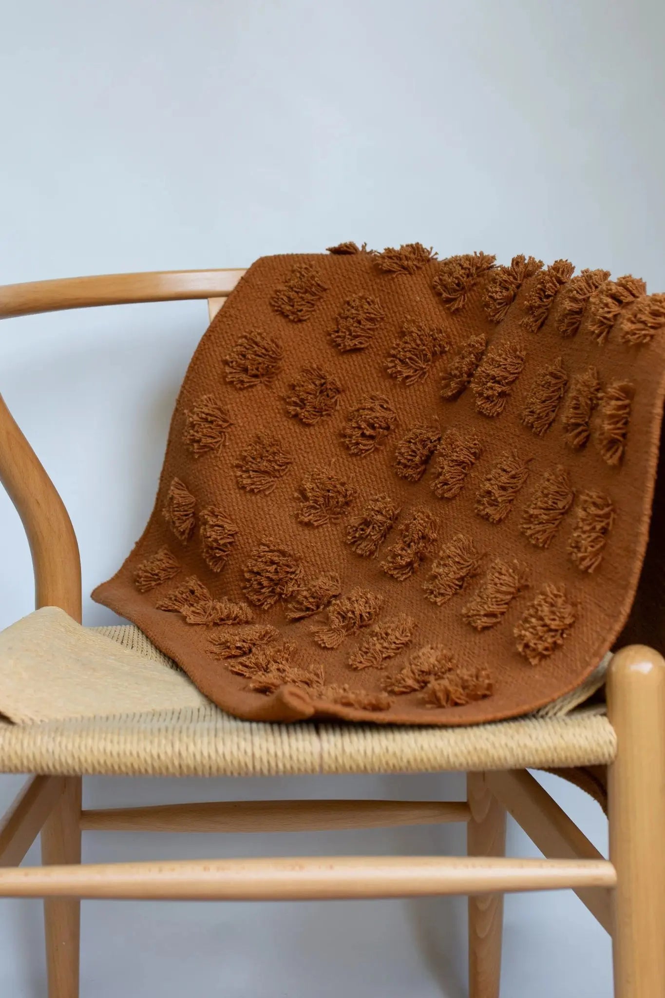 Construction: Textured handwoven design with raised pom detailing