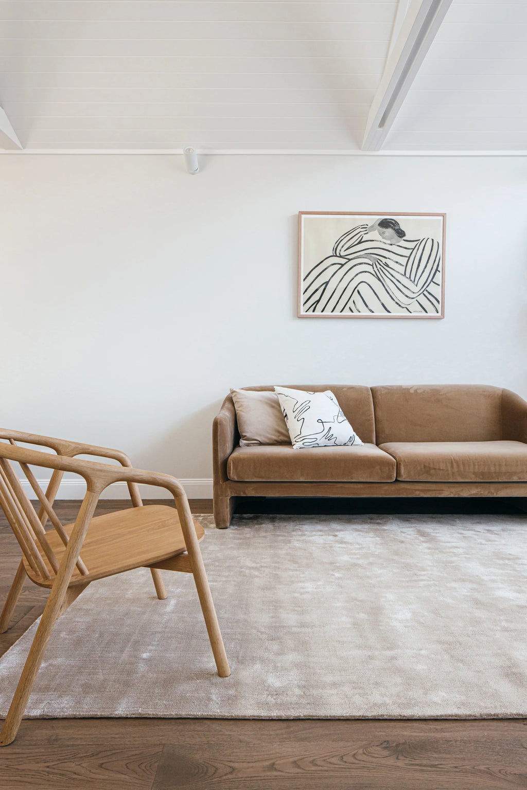 Large rugs can tie your entire room together, complementing tones and materials throughout your space.