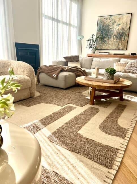 Mid-century rugs that offer a unique combination of design, craftsmanship, and aesthetic appeal that can enhance the atmosphere of any room. Encompassing some of the major components of mid-century rugs popular in the mid-20th century, including; geometric patterns, vibrant colours & solid colours, including olive greens, deep reds, teal, mustard, brown and orange and natural materials like wool and cotton.