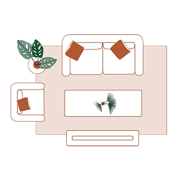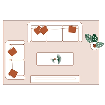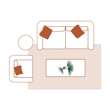 The rug should frame your space, so the preference is to have a rug large enough so that it extends beyond the length of your lounge by at least 10-20cm on each side. In a bedroom, it should extend at least 50cm out from the sides of the bed to provide a luxurious resting place for your feet when you get in and out of bed.
