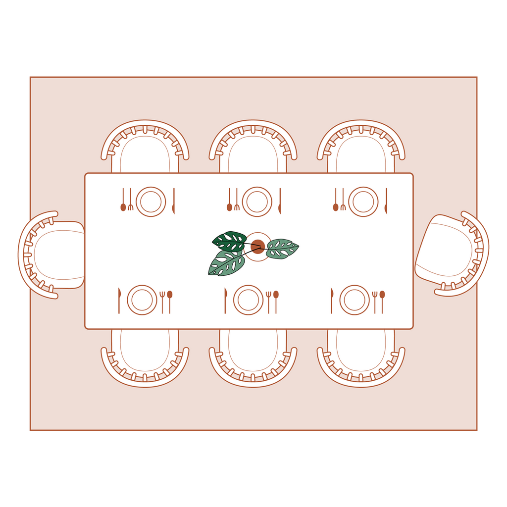 Ensure that your dining table and chairs can fully rest on the rug, even when the chairs are fully pulled out. The dining table should have an even border surrounding it, approximately 70-90cm depending on chair size.