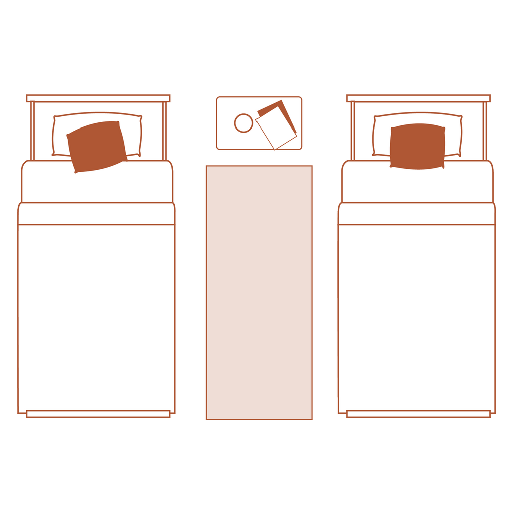 For a room with 2 single/king single beds or only a small strip of floor, you could place a runner or a small rug in the middle or on the side of the bed.