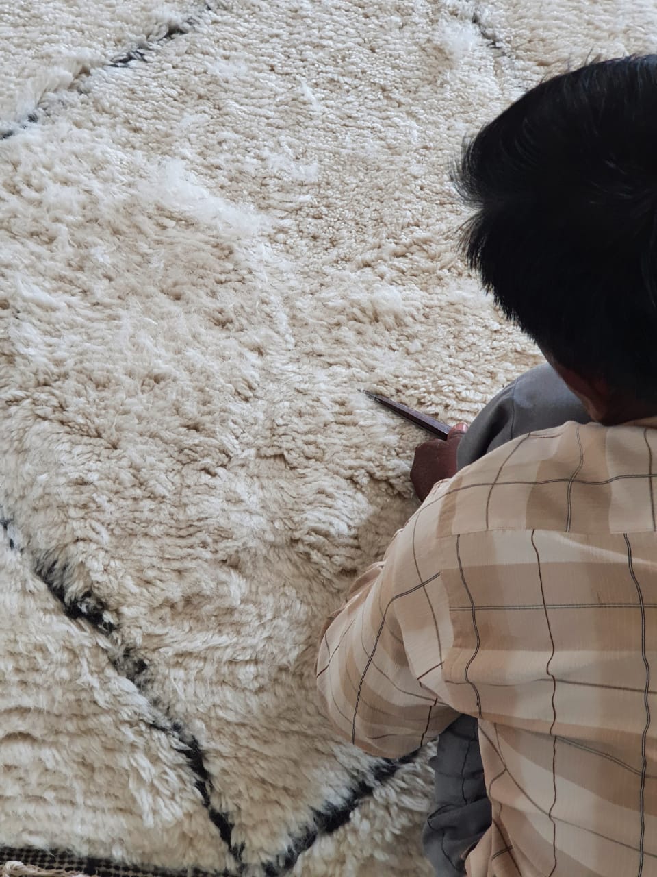 This involves stretching, binding, dry washing, trimming and clipping. A manual process that ensures the rug is finished at the highest standards and to promote its durability.